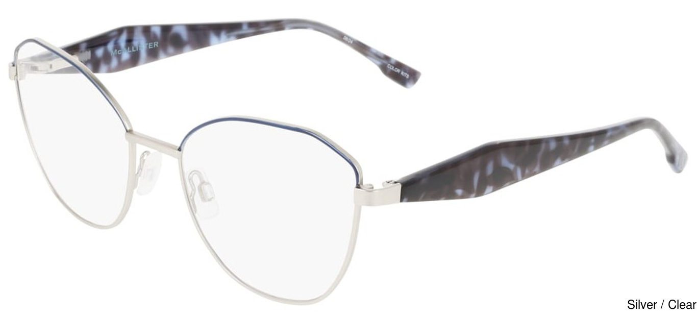 The Mcallister Eyeglasses MC4547 040 comes in 1 colors. The official color/codes are Silver / Clear. There may be other colors available that were not initially released by the manufacturer.