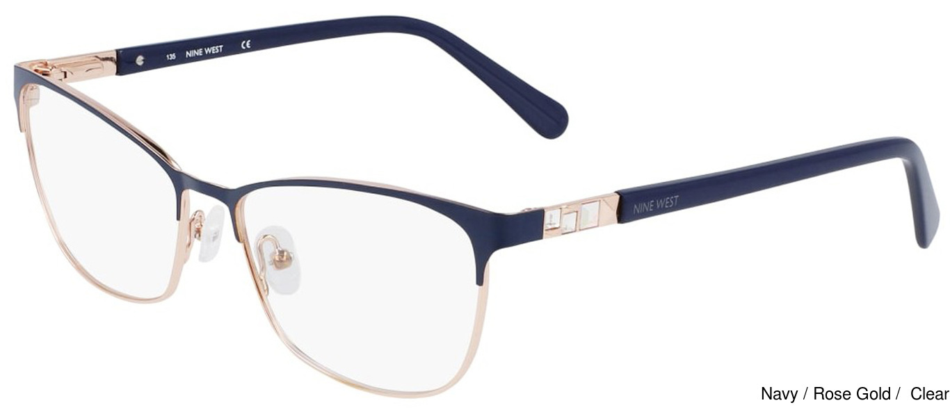 The Nine West Eyeglasses NW1099 400 comes in 1 colors. The official color/codes are Navy / Rose Gold / Clear. There may be other colors available that were not initially released by the manufacturer.