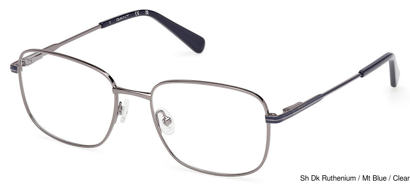 The Gant Eyeglasses GA50069 013 comes in 1 colors. The official color/codes are Sh Dk Ruthenium / Mt Blue / Clear. There may be other colors available that were not initially released by the manufacturer.