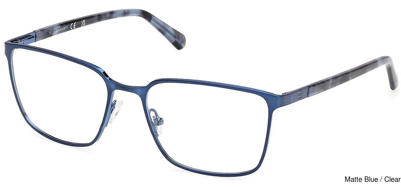 The Guess Eyeglasses GU50243 091 comes in 1 colors. The official color/codes are Matte Blue / Clear. There may be other colors available that were not initially released by the manufacturer.