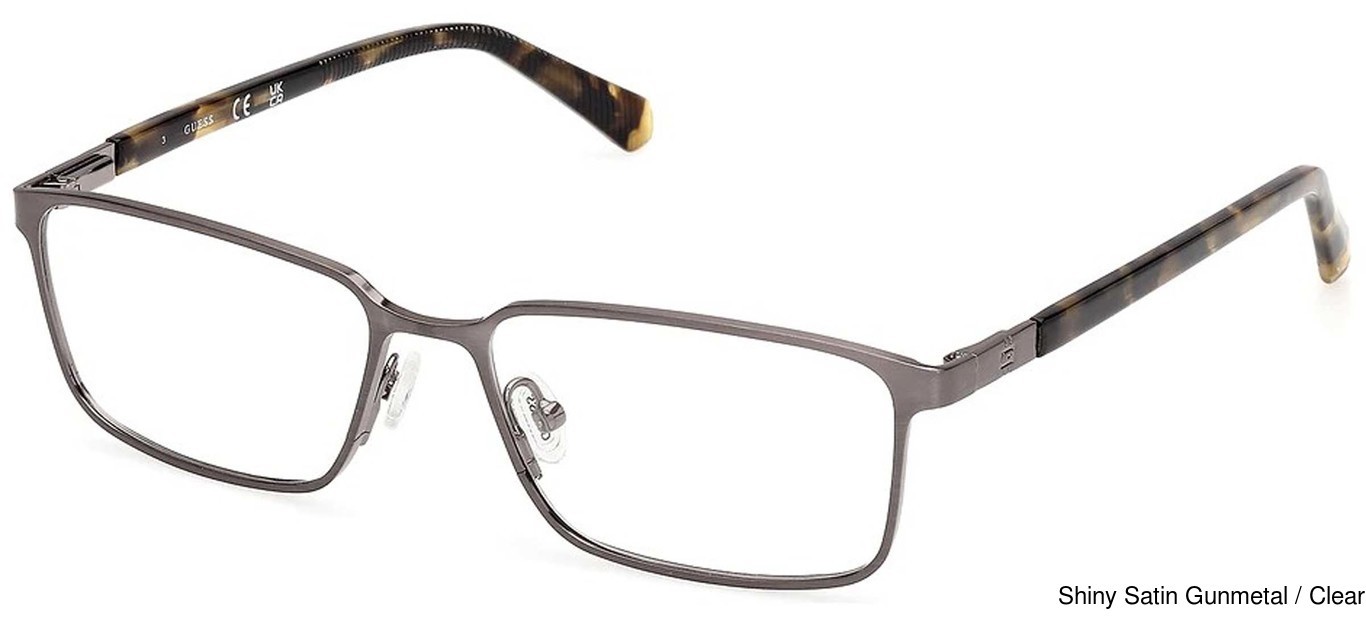 The Guess Eyeglasses GU50244 009 comes in 1 colors. The official color/codes are Shiny Satin Gunmetal / Clear. There may be other colors available that were not initially released by the manufacturer.