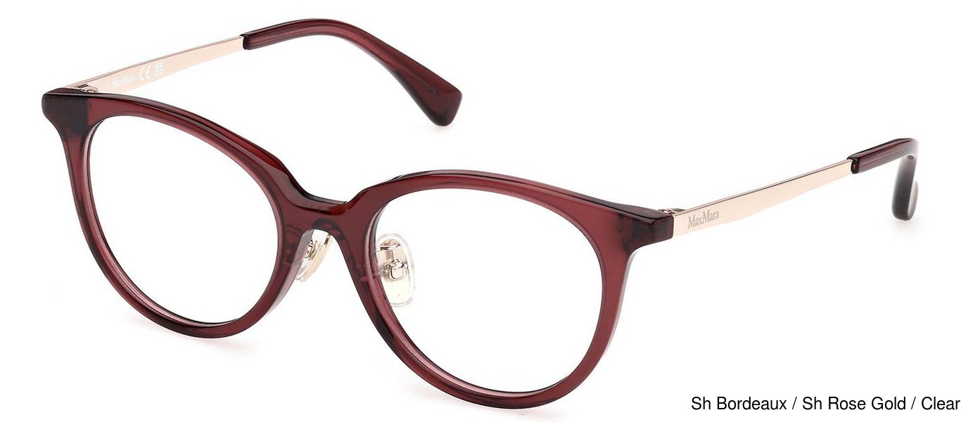 The Max Mara Eyeglasses MM5218-D 071 comes in 1 colors. The official color/codes are Sh Bordeaux / Sh Rose Gold / Clear. There may be other colors available that were not initially released by the manufacturer.