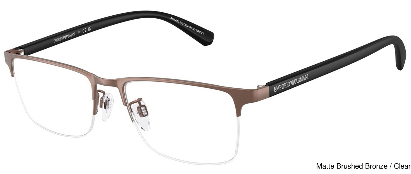 The Emporio Armani Eyeglasses EA1085D 3039 comes in 1 colors. The official color/codes are Matte Brushed Bronze / Clear. There may be other colors available that were not initially released by the manufacturer.