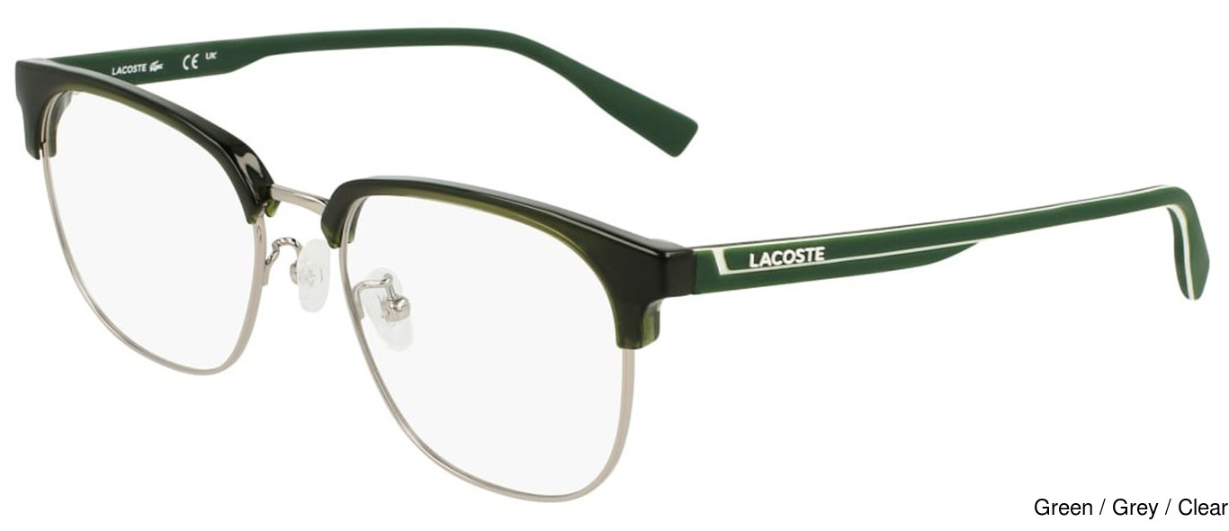 The Lacoste Eyeglasses L2527LB 301 comes in 1 colors. The official color/codes are Green / Grey / Clear. There may be other colors available that were not initially released by the manufacturer.