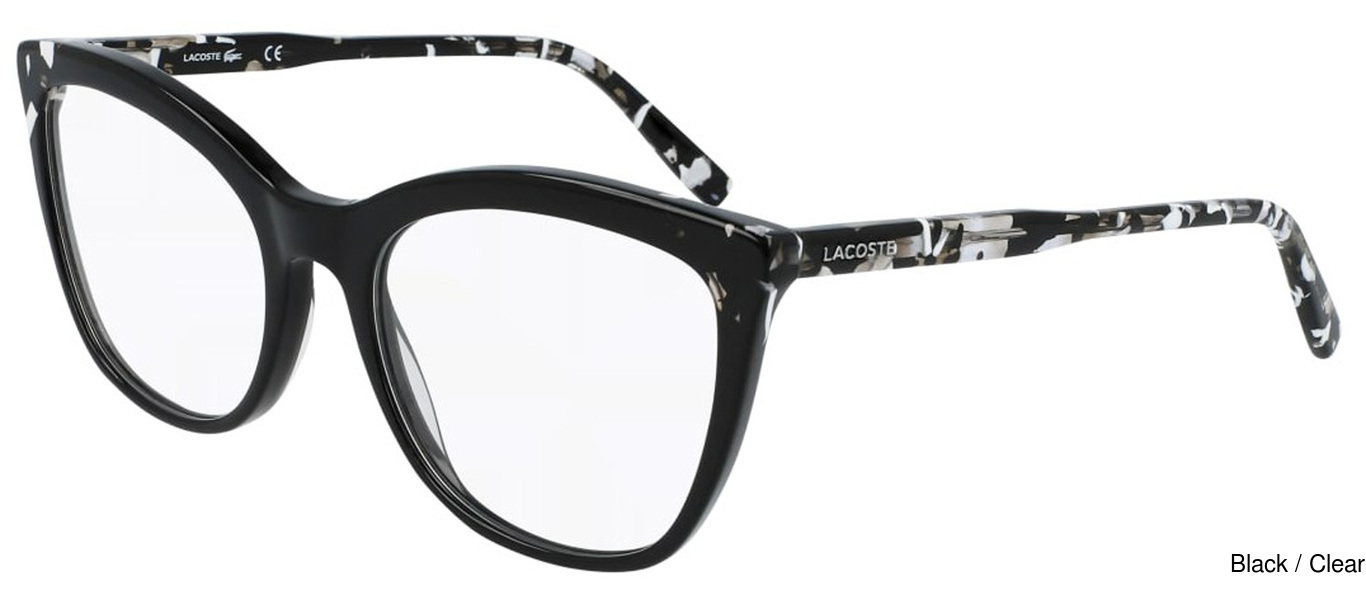 The Lacoste Eyeglasses L2884 001 comes in 1 colors. The official color/codes are Black / Clear. There may be other colors available that were not initially released by the manufacturer.
