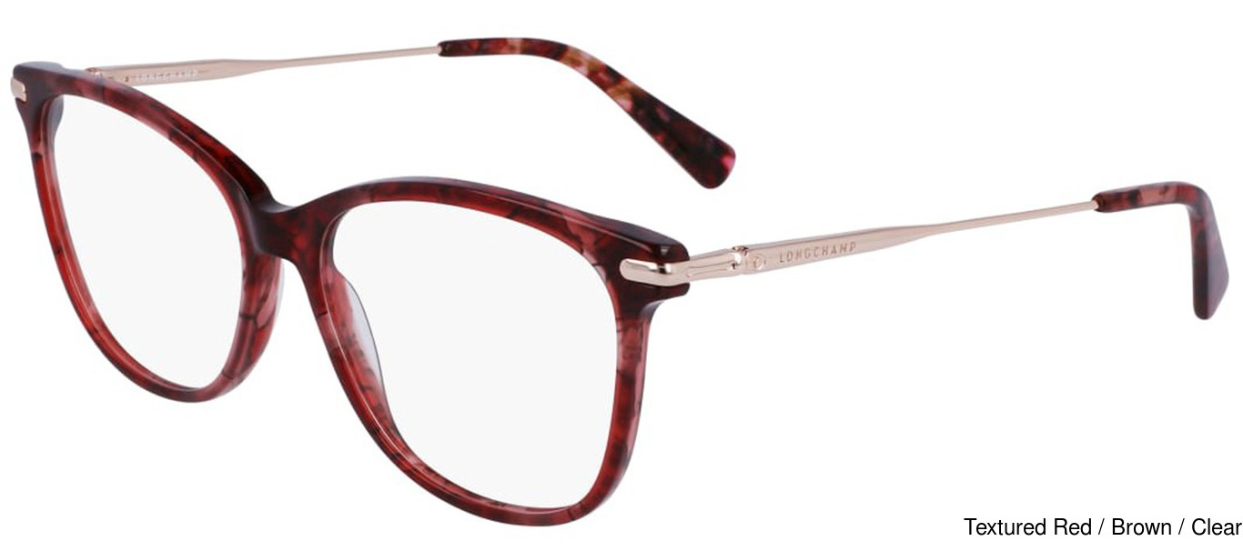 The Longchamp Eyeglasses LO2691 237 comes in 1 colors. The official color/codes are Textured Red / Brown / Clear. There may be other colors available that were not initially released by the manufacturer.