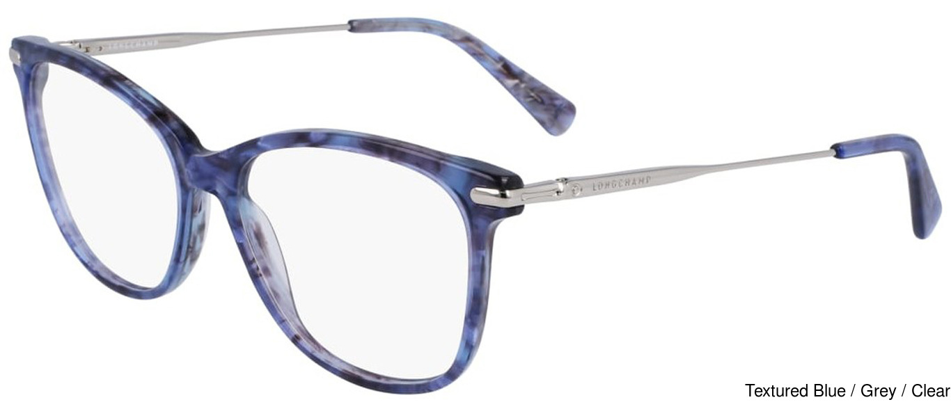 The Longchamp Eyeglasses LO2691 406 comes in 1 colors. The official color/codes are Textured Blue / Grey / Clear. There may be other colors available that were not initially released by the manufacturer.