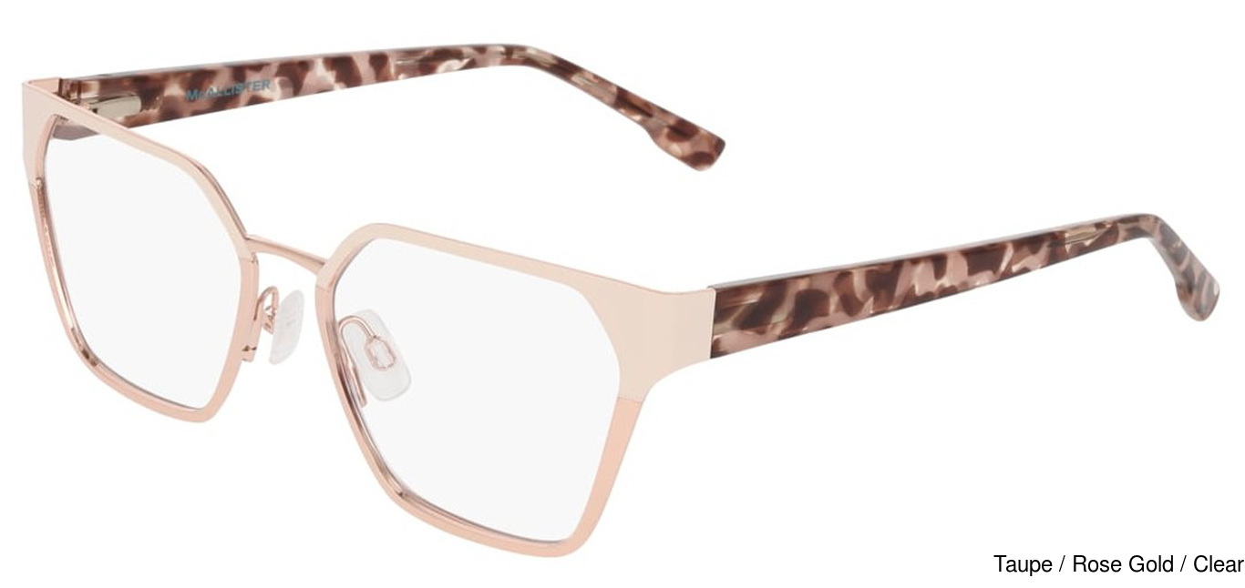 The Mcallister Eyeglasses MC4550 204 comes in 1 colors. The official color/codes are Taupe / Rose Gold / Clear. There may be other colors available that were not initially released by the manufacturer.