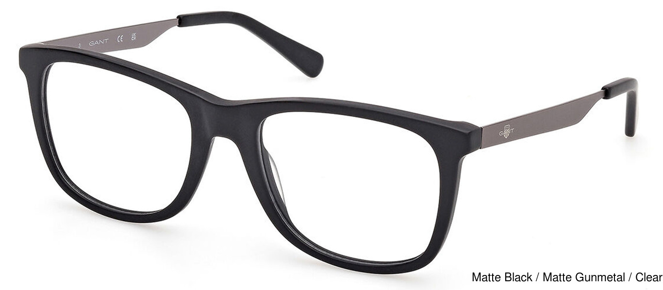 The Gant Eyeglasses GA50048 002 comes in 1 colors. The official color/codes are Matte Black / Matte Gunmetal / Clear. There may be other colors available that were not initially released by the manufacturer.