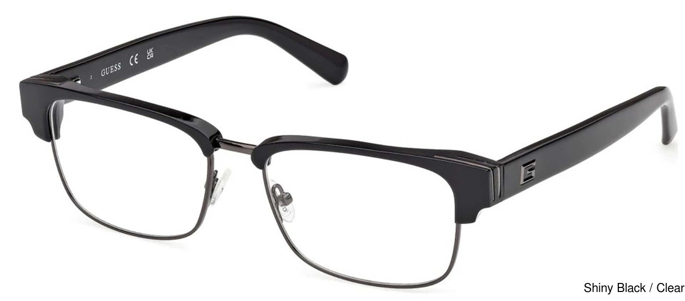 The Guess Eyeglasses GU50330 001 comes in 1 colors. The official color/codes are Shiny Black / Clear. There may be other colors available that were not initially released by the manufacturer.