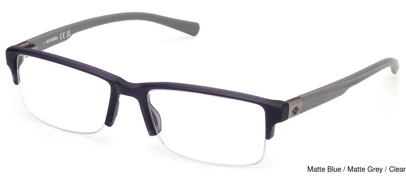 The Harley Davidson Eyeglasses HD50096 091 comes in 1 colors. The official color/codes are Matte Blue / Matte Grey / Clear. There may be other colors available that were not initially released by the manufacturer.