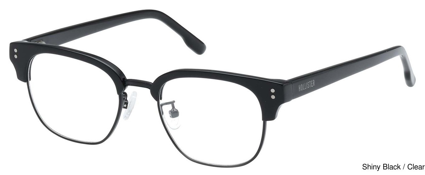 The Hollister Eyeglasses HL50034 001 comes in 1 colors. The official color/codes are Shiny Black / Clear. There may be other colors available that were not initially released by the manufacturer.
