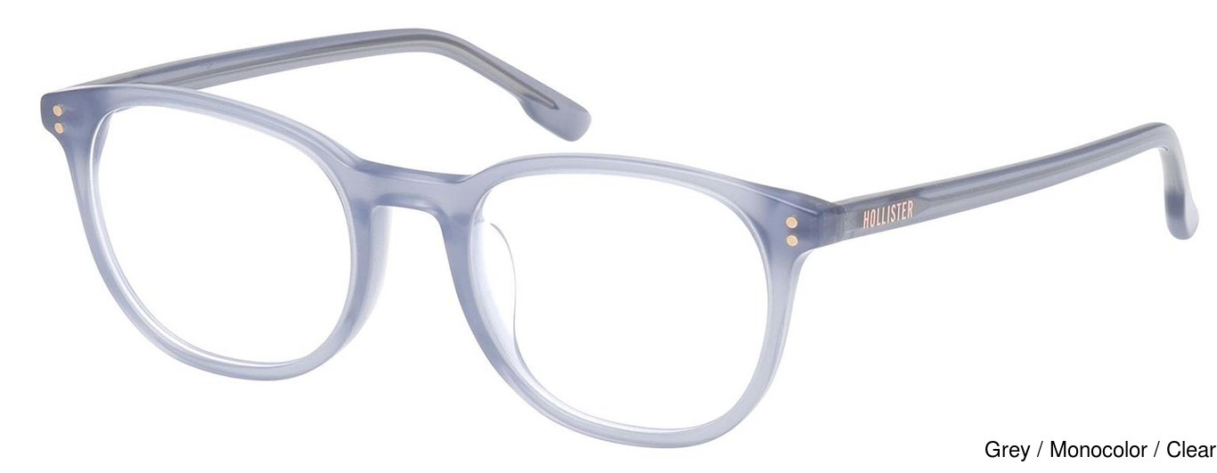 The Hollister Eyeglasses HL50041 020 comes in 1 colors. The official color/codes are Grey / Monocolor / Clear. There may be other colors available that were not initially released by the manufacturer.