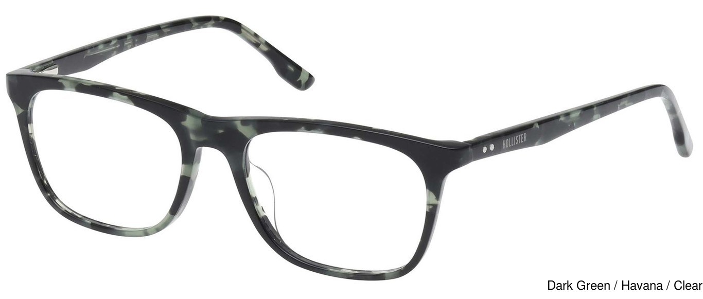 The Hollister Eyeglasses HL50044 098 comes in 1 colors. The official color/codes are Dark Green / Havana / Clear. There may be other colors available that were not initially released by the manufacturer.