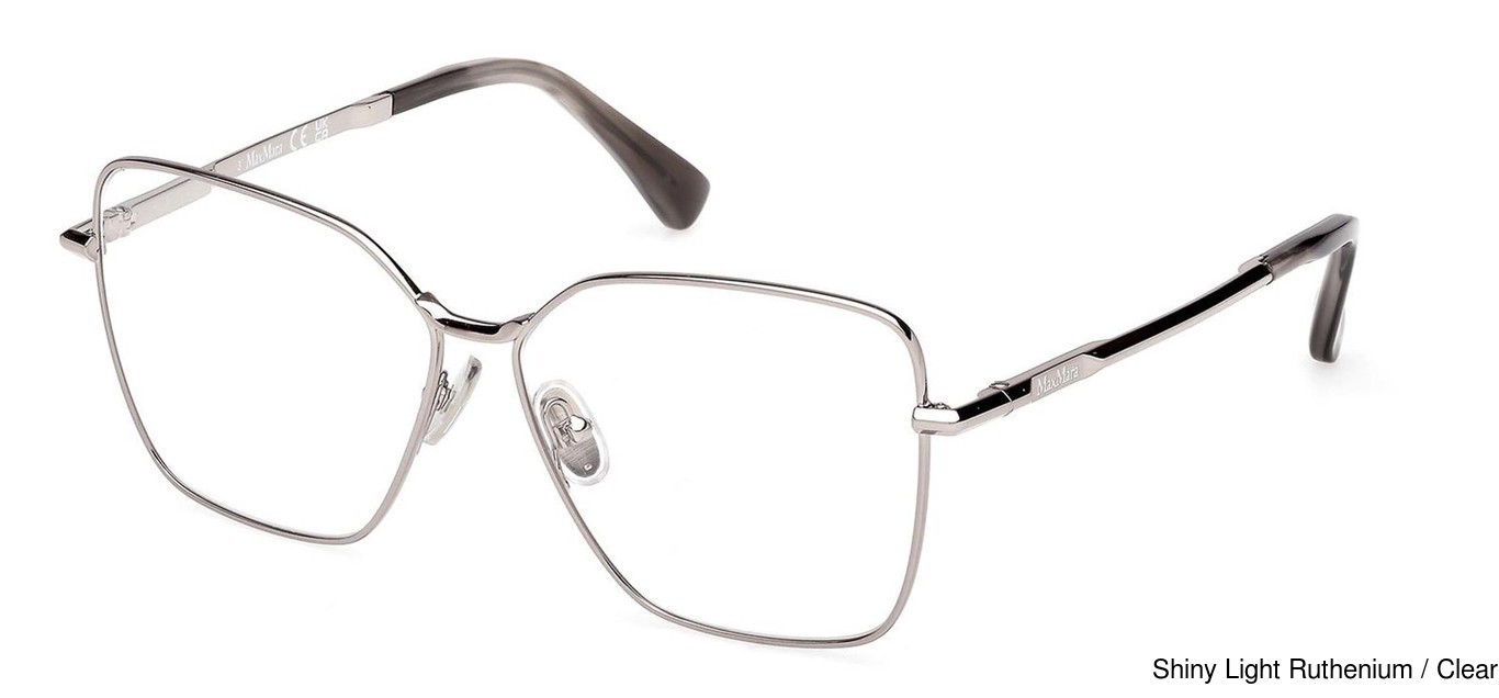 The Max Mara Eyeglasses MM5187 014 comes in 1 colors. The official color/codes are Shiny Light Ruthenium / Clear. There may be other colors available that were not initially released by the manufacturer.