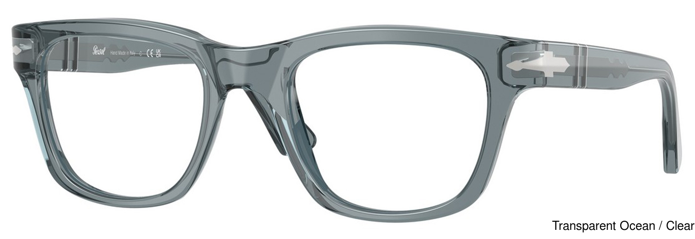 The Persol Eyeglasses PO3389V 1227 comes in 1 colors. The official color/codes are Transparent Ocean / Clear. There may be other colors available that were not initially released by the manufacturer.